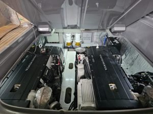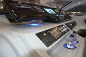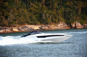Sistema Auto Anchoring: A MURANO 50 é equipada com um lançador e contador de metros de cabo. Esse lançador “conversa” com o GPS e sabe qual a profundidade da água. Então você apenas aperta o Auto Anchoring, ele lê a profundidade, multiplica por 5 e solta o cabo sozinho. Prático não?